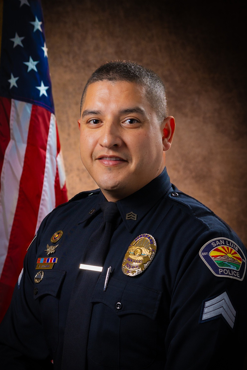 Sergeant Aldama is currently assigned to the Patrol Division of the San Luis Police Department.